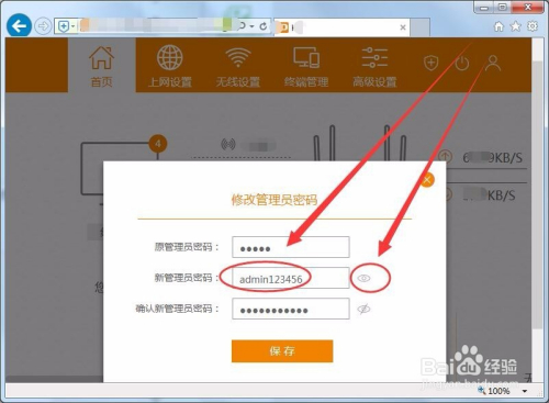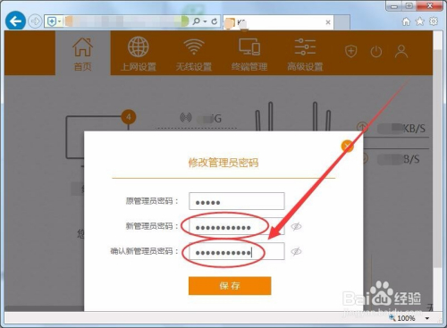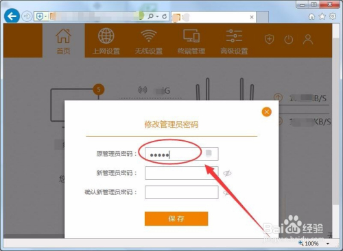 点窜办理员密码对话框中,原办理员密码处,输入登录路由器的默认密码。