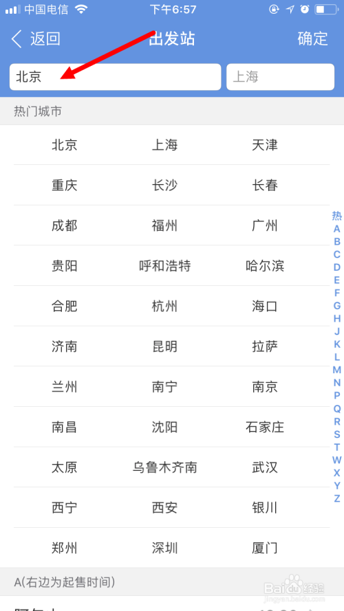 然后,选择出发站。