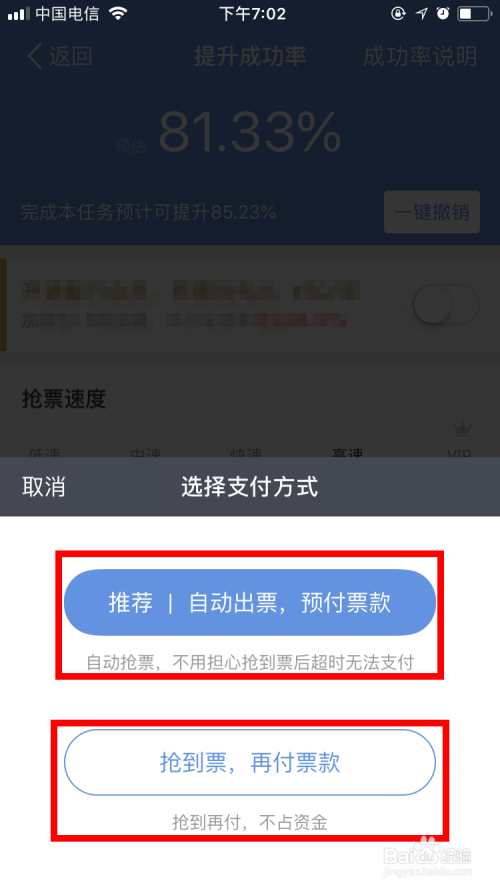 接着,要选择付出体例。一是,预付票条目,然后系统主动出票;二是,抢到票后,再进行付出。