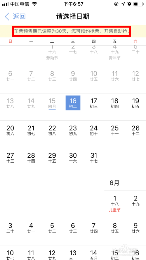 可以看到火车票的预售期为30天。