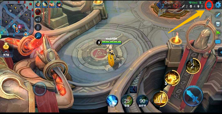 下图是王者荣耀对局中的游戏截图,我们在右上角找到三条线的图标,点击今后可以查看敌我两边对战的环境...