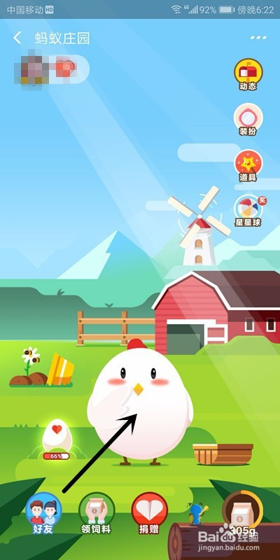 打开付出宝,点击小鸡图标,进入蚂蚁庄园。