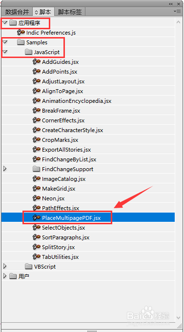 按下图点开JavaScript后双击【PlaceMultipagePDF.jsx】
