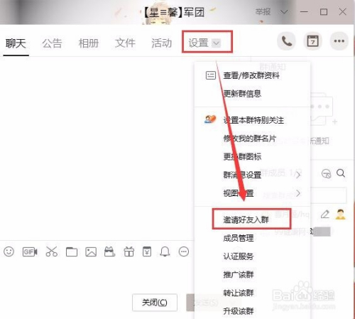 今朝我知道的qq邀请老友进群的方式有两种,第一种是在qq群聊窗口中邀请老友,首先打开我们的qq群聊天窗口,点击上方导航中设置菜单下的邀请老友入群。