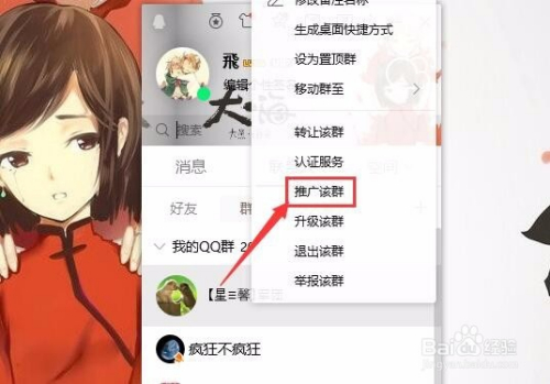第二种qq邀请老友进群的方式就是利用推广该群的功能,如图,鼠标移动到qq群图标上,右键选择推广该群。