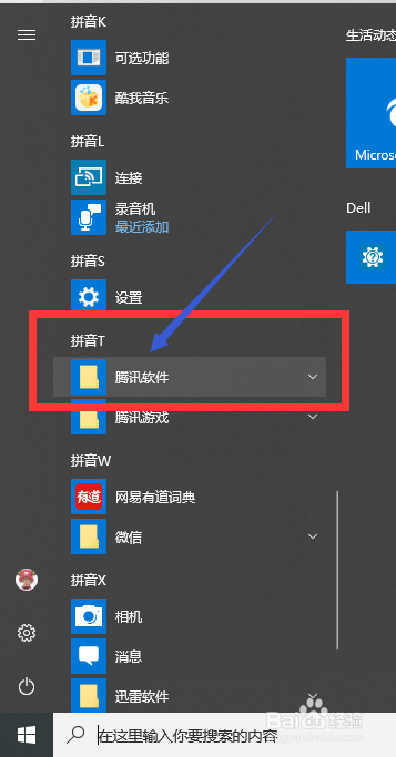 因为法式是按住应用首字母排行的,而腾讯QQ首字母是T,所以我们需要找到拼音为T的那块区域。