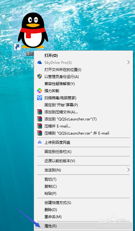 当有了快捷体例之后,将快捷体例剪切或复制到电脑桌面上。然后鼠标右键单击该快捷体例,选择属性。