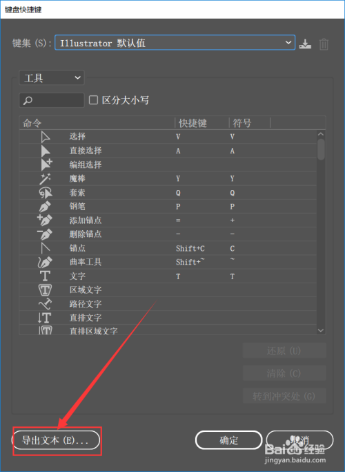 然后就会弹出键盘快捷键的面板,我们也可以在这设置快捷键,当然我们今天不是来设置快捷键的,所以我们要选择左下角的【导出文本】,如下图所示。