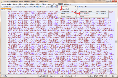 json作为一种轻量级的数据格局,日常平凡数据传输时,它的格局一般是json格局的,可是那些json数据一般是颠末加密的了,它会酿成一段很长的字符串,看得目炫狼籍的,可以将它格局化一下再看,如许就很清晰了,那么怎么利用Notepad++格局化json呢?