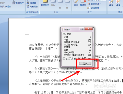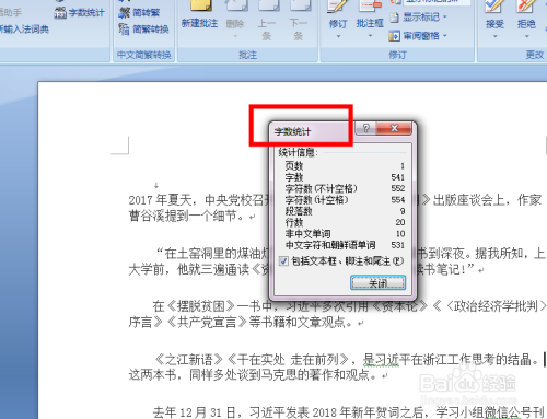 我们这时在这些选项中找到字数统计选项并点击该选项;