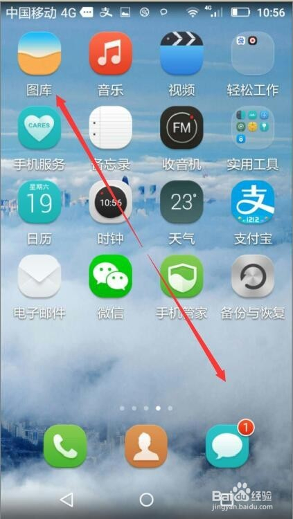 打开华为手机,进入它的桌面,桌面上有良多图标;