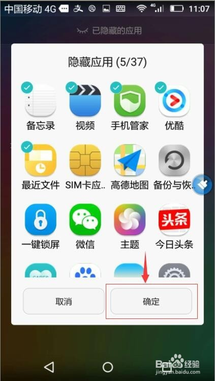 今朝选中了5个图标,它们的前面被打上了勾,我们按一下确定;