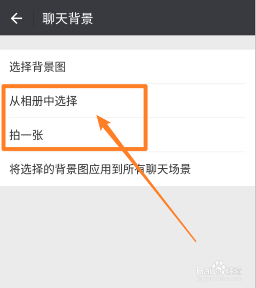 我们要自界说聊天布景,所以点击【从相册中选择】或者【拍一张】