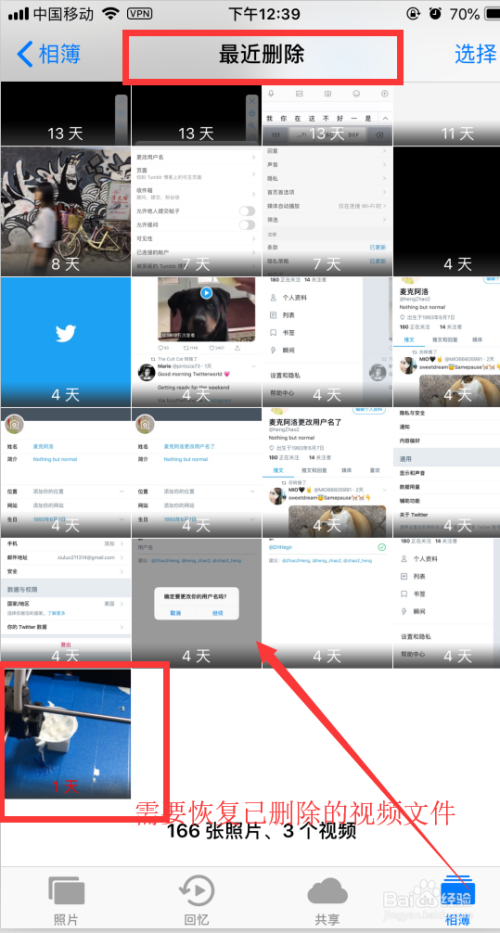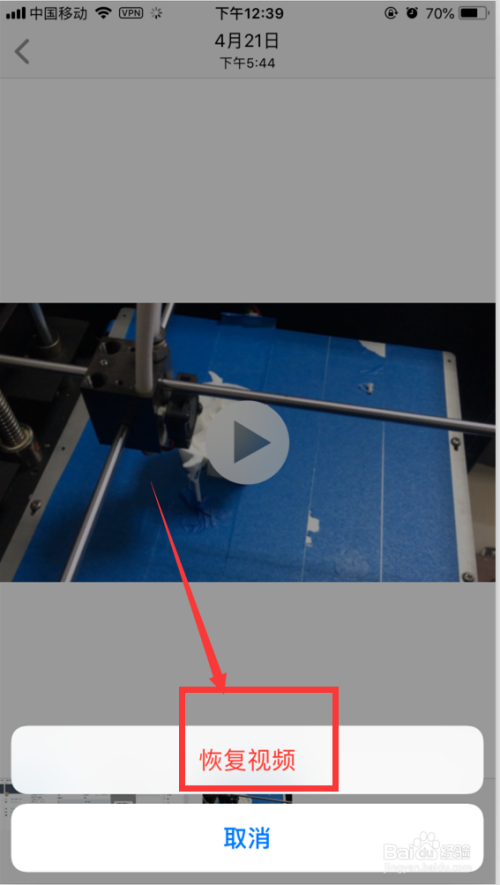 7. 在【照片】app中找到恢复的视频文件,点击即可以播放