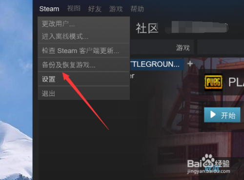 首先是steam 的设置,我们打开我们的steam之后找到左上角的设置。