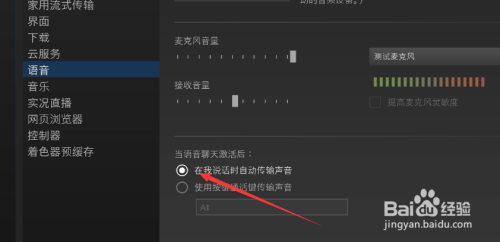 然后我们把语音设置下的当我措辞时主动为我传输声音开启。