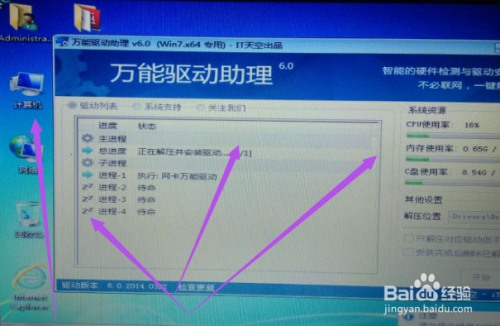 然后就重装完当作了,会来到桌面上,可以看到桌面上的图标都比力年夜,那是因为刚装好系统,它默认的分辩率比力低,所以图标才年夜,这个时辰,就可以安装需要的驱动了,有些系统自带驱动,有些则没有,没有的可以按照需要下载安装驱动。