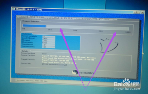 当这些工作都筹办好之后,就起头系统的重装了,重装过程需要必然的时候,而这个过程中会安装一些法式文件、设置装备摆设等等。