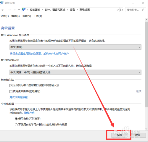这里我选择了搜狗拼音输入法作为默认输入法,在点击下方“保留”即可。