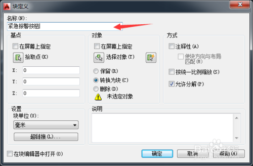 首先我的草图里有一个告急报警按钮的图案,如何转换当作块呢?
