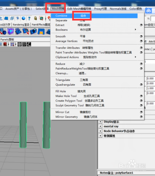 选中两个圆柱,执行号令,归并,将两个圆柱归并当作一个模子