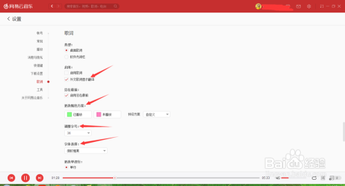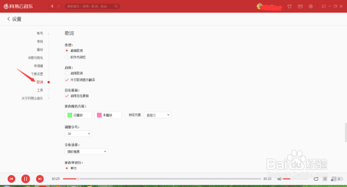 网易云音乐中歌词的颜色以及滚动都可以经由过程设置来完当作