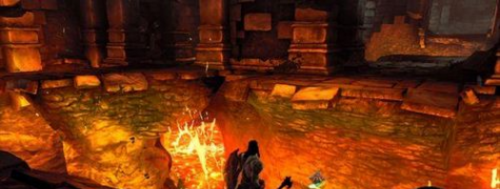 圣釜殿一层,在解开熔岩机关的路途,跳回原先的平台即可主动获得(如下图)