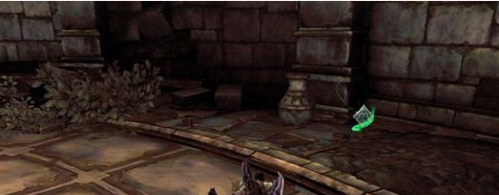 拿到地下城地图之后,往左来到杀死潜行者的圆形竞技场,鄙人图所示的位置击毁木桶即可发现藏在背后的硬币