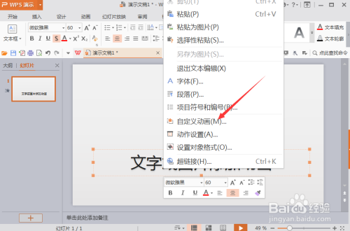 我们选择文本框右击就可以看到有一个“自界说动画”。