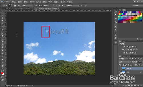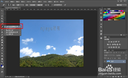五、操纵“仿制钤记东西”,去水印。方式和”修复画笔东西“一样。