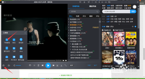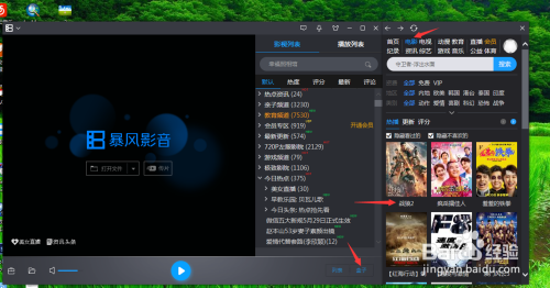 打开暴风影音,我们选择一部片子进行下载,点击“盒子”-“片子”。好比选择战狼2