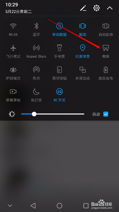下拉通知栏,找到如图所示的截屏东西,点击即可截取屏幕