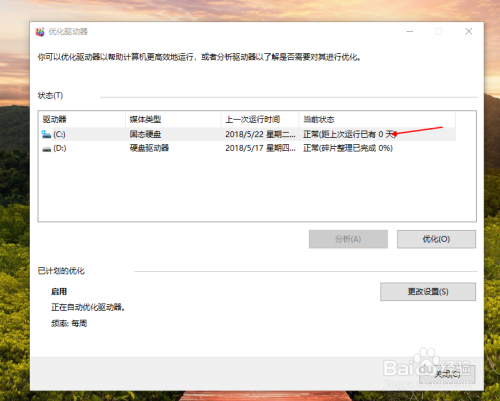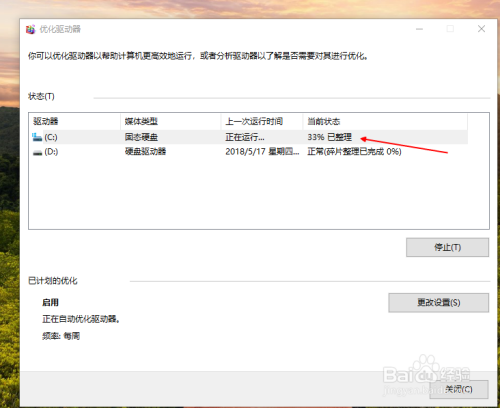 点击启动法式,选摘要优化的磁盘,点击优化按钮,期待优化完毕。
