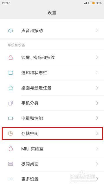 打开设置今后,点击进入“存储空间”。