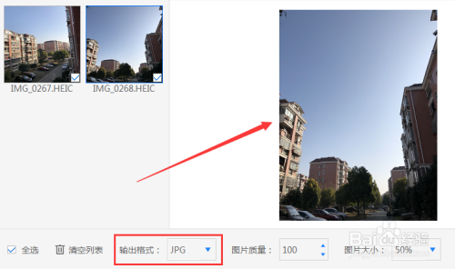 这界面中我们可以预览到方才添加的HEIC文件,接下来就是进行转换的设置了,在输出格局选项中我们可以选择JPG格局。