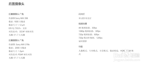 后置摄像头像素:2000万像素+1600万像素;