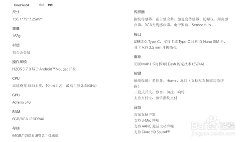 一加5T尺寸,156.1x75x7.25mm;一加5尺寸,154.2x74.1x7.25mm!