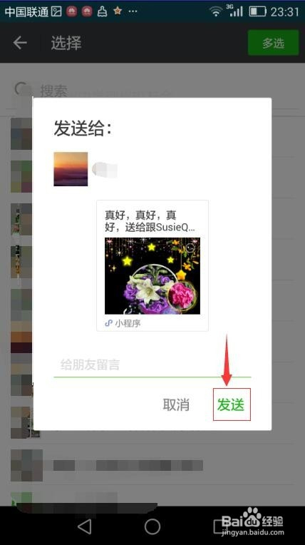 选择想发送祝福给她的伴侣,然后点发送;