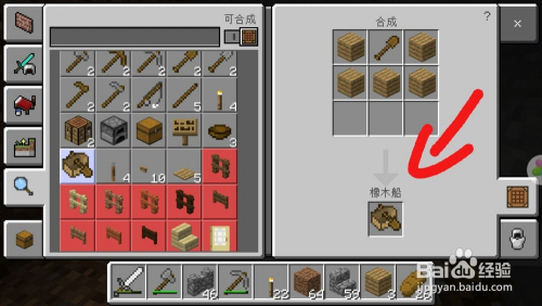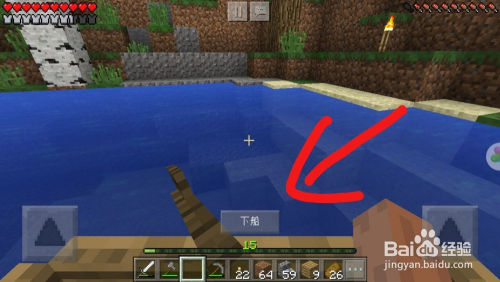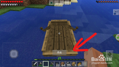 操纵前面做好的木锹和木板按照下面如许排放就可以或许做当作船了。做好船之后我们需要找到一个湖或者河道。然后点击小河就可以或许将船放到河里了。