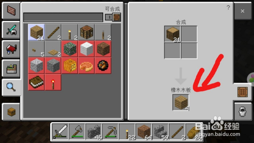 其次,操纵我们撸好的树直接合当作木板,在这里可以直接全数合当作木板。