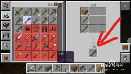 接着我们需要选两个木板做当作木棍,操纵做好的木棍和木板合当作木锹。