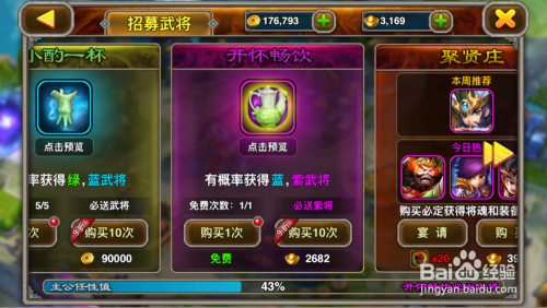 酒馆中的畅怀畅饮,除了能获得紫色武将外,也能获得紫色的装备!