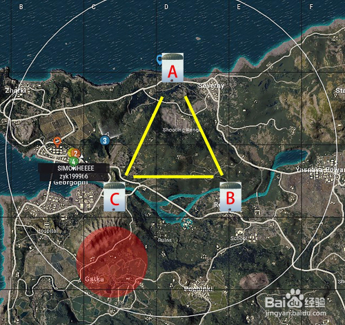 2.第二种纪律:在平安区内按等边比例投放空投,投放了三次,比力少见。那么三次投放的偏向是按顺时针依次投放的。那么别的一种等边比例是针对所发生的每一个平安区;好比第一圈在A,第二圈就在B,第三圈在C;你可以把它算作是一个圈。