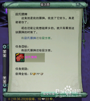 3、当作功获得使命品后,【段氏腰牌】X1,需要做的是将腰牌交给兽医段方西。