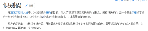 识别码,是当你把一个字的字根全数拆解完,且码位不敷四位时利用的,这里引用百度百科中的常识。