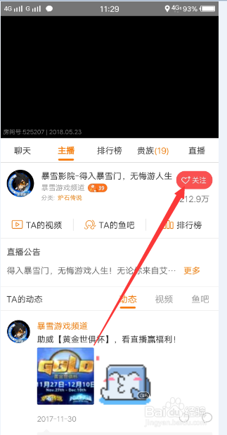 在新显示的界面中,存眷按钮是亮起的,我们点击它,然后就酿成已存眷了,如许就完当作了在斗鱼直播中对暴雪游戏频道的存眷。