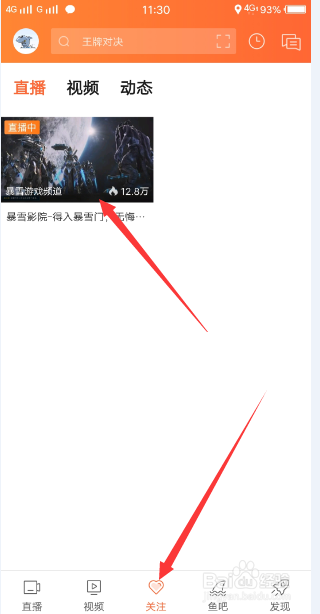 最后返回到本家儿界面,点击下方中心位置的存眷按钮,显示的直播存眷中,暴雪游戏频道已经在内。