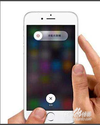 第二步,接下来我们电源键和本家儿屏幕中心的home键同时按住,让手机硬关机然后开机,若是呈现白色苹果的标记就好了。