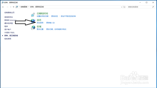 在节制面板打开“时钟、说话和区域”设置界面