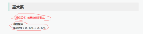 巫术系的变更很少,只有一个,就是 ‘相位猛冲’ 的移速供给加强;(感觉是选相位猛冲的太少,加强一下存在感....)